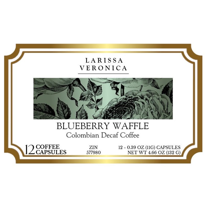 - You will enjoy our delightful Blueberry Waffle Colombian Decaf coffee in convenient coffee pods! These pods are compatible with single-serve k-cup brewing systems. - Our Blueberry Waffle Colombian Decaf coffee combines the tasty, naturally flavor of Blueberry Waffle with our decaffeinated medium-bodied Colombian Coffee. Our decaffeinated mild and less-acidic Colombian coffee is blended with a natural Blueberry Waffle flavor. - Ingredients: Decaffeinated Colombian Coffee and Natural Blueberry W