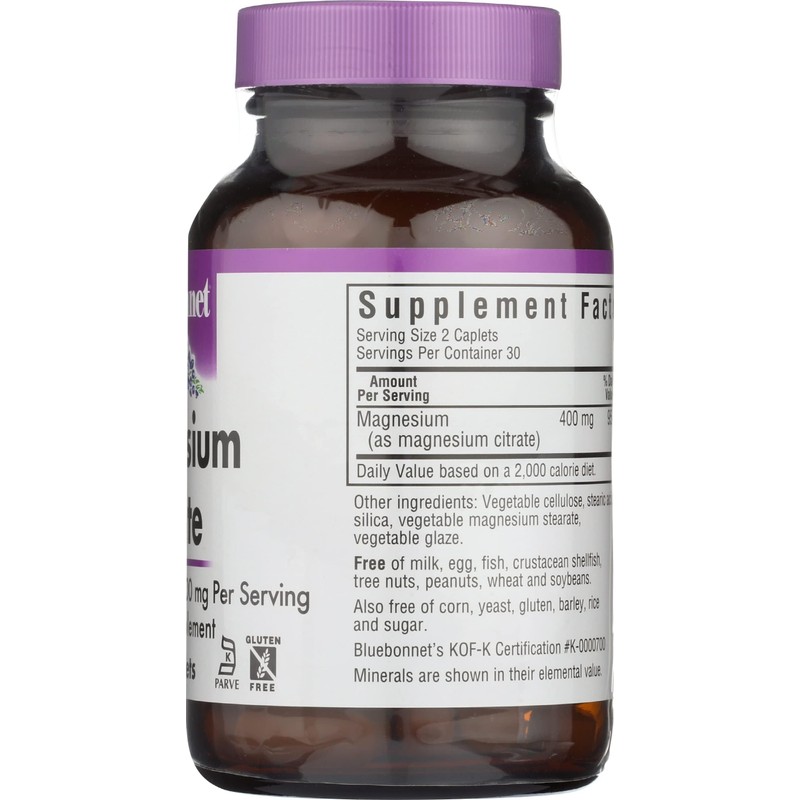 Bluebonnet Nutrition Magnesium Citrate (400mg of Magnesium)- Maximum Absorption - Supports Immune Health & Energy Production - Soyfree, Gluten-Free, Non-GMO, Kosher, Dairy Free, Vegan, 60 Caplets