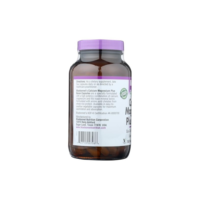 BlueBonnet Cápsulas vegetarianas de calcio, magnesio y boro, blanquecino, 180 unidades