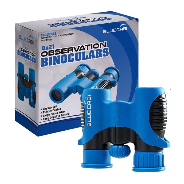 BlueCabi 8x21 Kids Binoculars – Compact, Durable and Lightweight with Magnification up to 8X – with Rubber Coating and Anti-Slip Texture – Includes Neck Strap, Wipe Cloth & Carry Case – Blue/Black