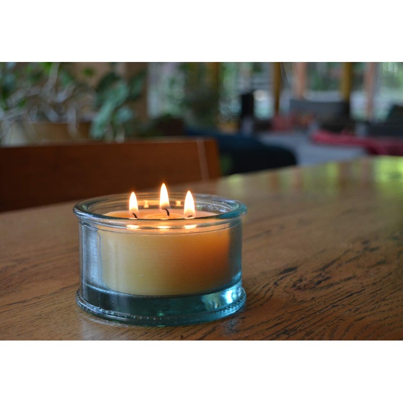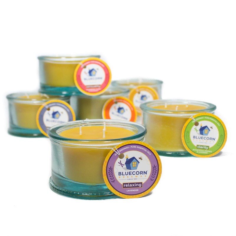 Bluecorn Beeswax 100% Recycled Spanish Glass Aromatherapy Beeswax Candle - 3 Wick - Well Being