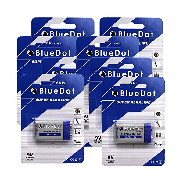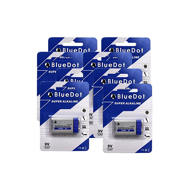 BlueDot Trading Heavy Duty Value Pack of 9 Volt Alkaline Batteries with 5-Year Shelf Life for Smoke and Carbon Monoxide Detectors, Security devices and Fire Alarms, 8 Count