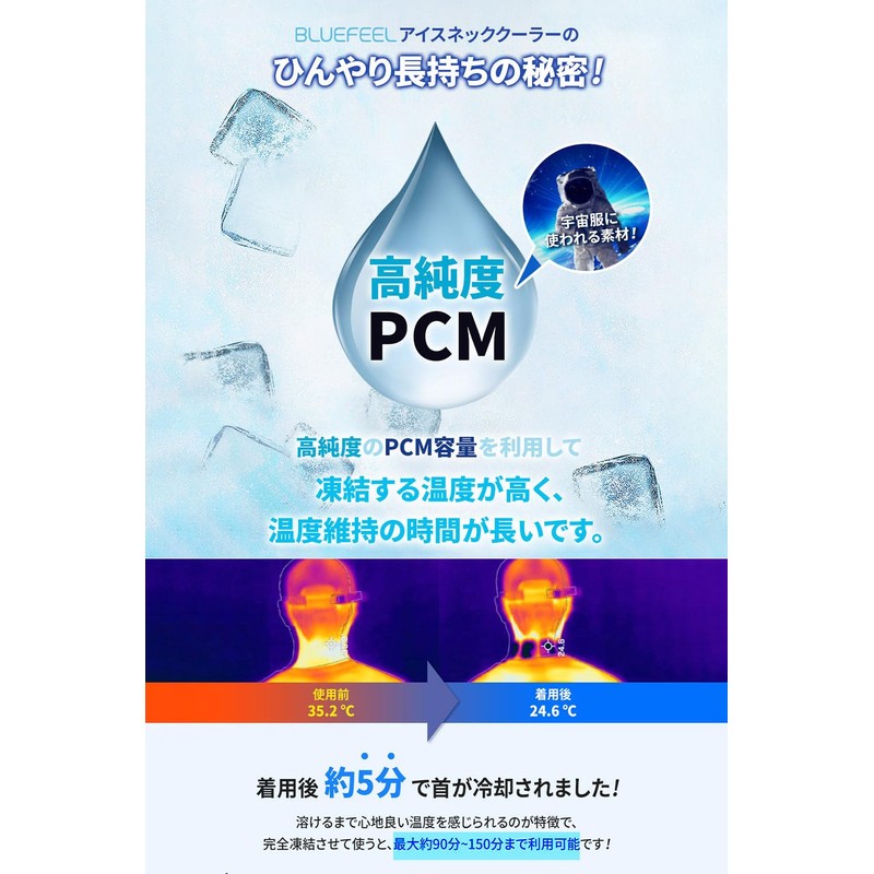 BLUEFEEL BLF25130 Ice Neck Cooler, Wide, High Purity PCM, Neck Cooling Goods, Heatstroke Protection, Button Type, 5 Adjustable Levels, 5 Adjustable Levels, Long Lasting Cooling, Large Capacity, 7.1 oz (200 g), Seamless Fit, Non-Toxic, Durable TPU Cool Be