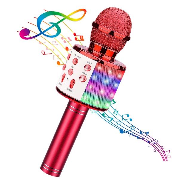 BlueFire 4 in 1 Handheld Karaoke Microphone, Portable Karaoke System with Speaker, Karaoke Machine Home KTV Player with Record Function for Android & iOS Devices (Red)