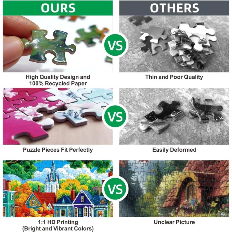 - High-Quality Materials: Crafted with eco-friendly, dust-free materials, our jigsaw puzzles prioritize your health while ensuring durability. The precision-cut pieces fit perfectly together, making every moment of assembly enjoyable. These 1000 piece puzzles are designed for adults who appreciate quality and detail.