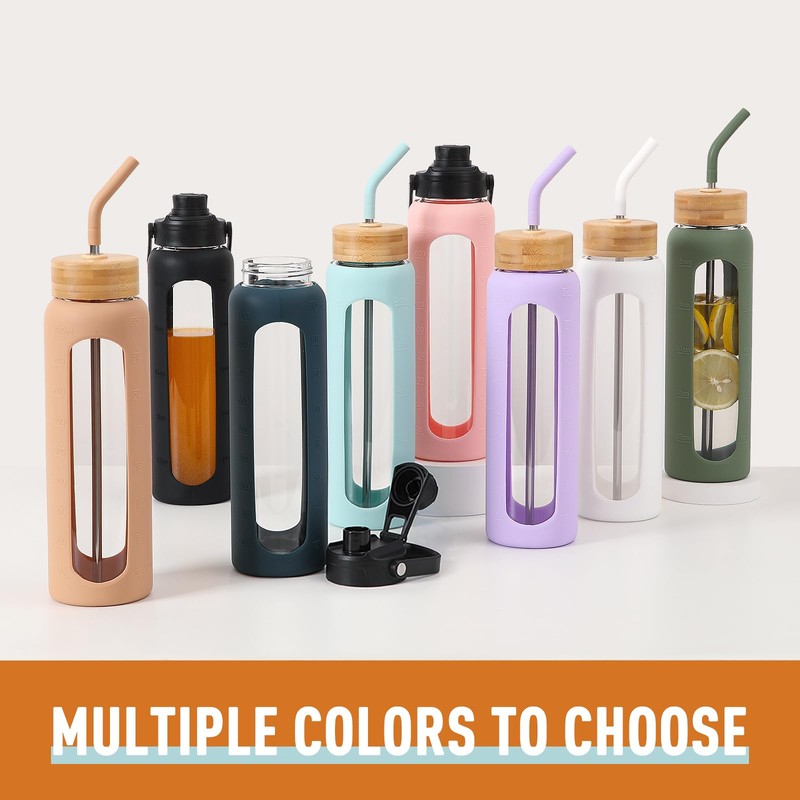 - BOROSILIKATGLAS: Dieser Glaswasserflasche mit Doppeldeckel besteht nach einem feinen Herstellungsprozess aus hochwertigem Glasmaterial, um die Qualität und Haltbarkeit des Bechers zu gewährleisten. Das Glasmaterial ist transparent, hitzebeständig und leicht zu reinigen, sodass Sie es bedenkenlos verwenden können.
