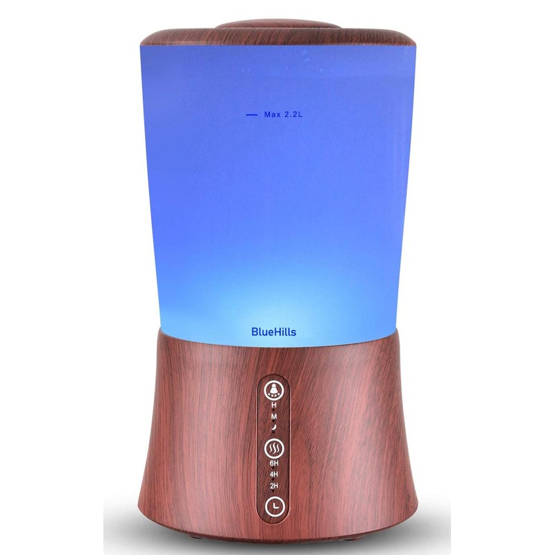 BlueHills Large 2000 ML XL Essential Oil Diffuser Aroma Humidifier 2 Liter Capacity for Big Living Room Home Baby Long Run XL Huge Coverage Area High Mist Timer Dark Wood Grain 2L S3