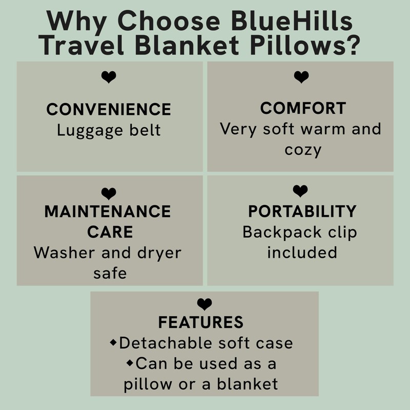 - Use as a Travel Pillow or Travel Blanket—Lightweight and Compact: Use our set as an airplane blanket, or put it in the case as a travel pillow for airplanes. Wrap yourself from neck to toe with our travel blankets. You’d need it all, from flights to cars, trains to buses, camping to concerts, and dorms to home. The ideal companion for all of your travel.