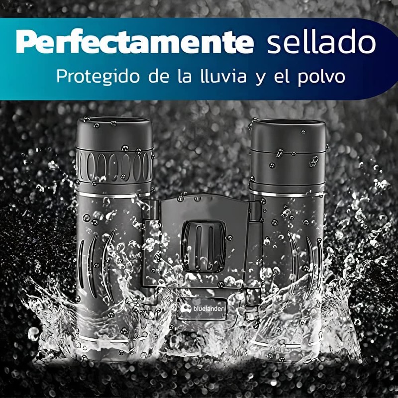 - [IMPERMEABLES Y RESISTENTES A LA NIEBLA] Con su recubrimiento impermeable, los binoculares son totalmente a prueba de niebla e IPX5 a prueba de agua, son increíblemente resistentes ya sea en su uso regular diario o en las condiciones climáticas más duras como montañas y desiertos