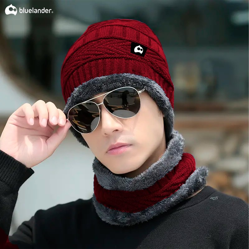 Bluelander Gorros para Invierno con Bufanda Hombre y Mujer, Conjunto de Bufanda con Gorro, Forro de Lana, A Prueba de Viento, Invierno (MX/US, Alfa, Talla única, Rojo)