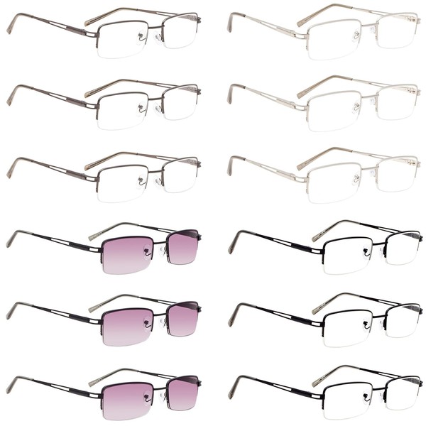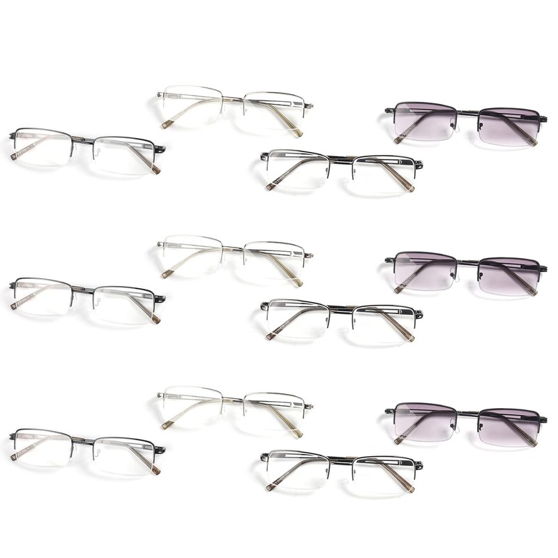 BLUELESS Metal Half-rim Reading Glasses Men 12-pack Readers(9 Pairs Reading Glasses & 3 Pairs Reading Sunglasses) +1.25