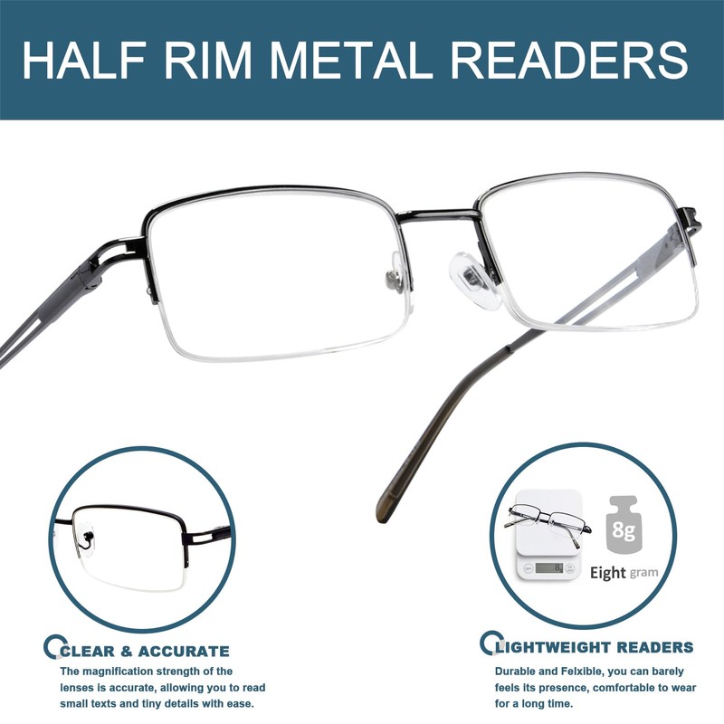 - ▶ Lightweight metal design readers for men at most ages. Comfortable cheaters available in 4 colors.