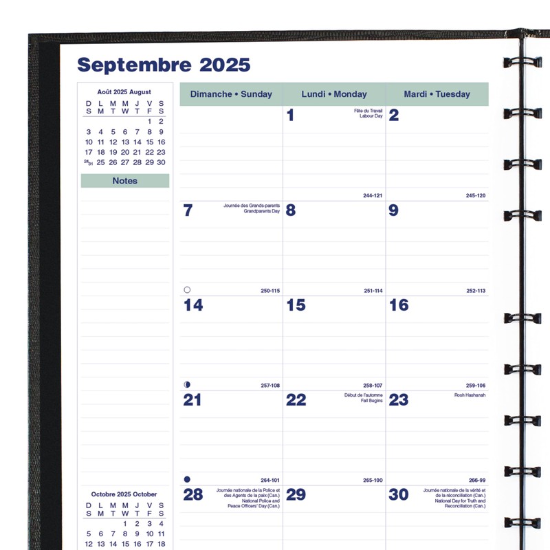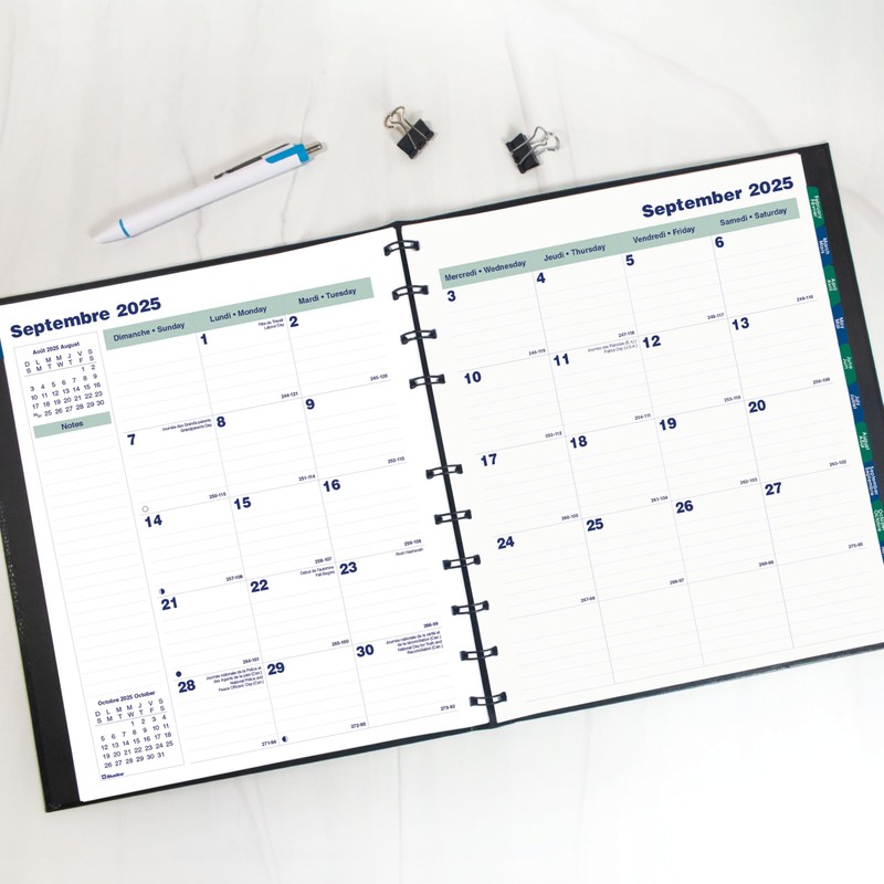 • VERSATILE | The Blueline MiracleBind CoilPro Monthly Planner spans 16 months, September 2025 to December 2026. Month-on-two-pages, one lightly ruled block per day (Sunday-Saturday). Dedicated area for notes on each spread. Bilingual: English and French.