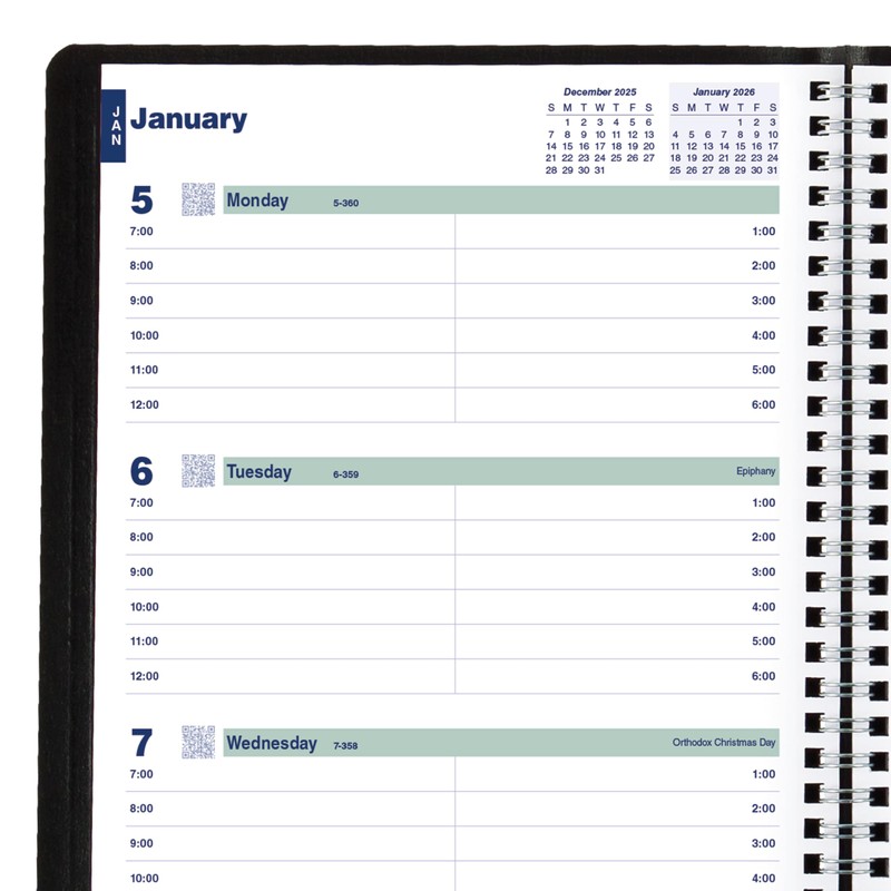 • VERSATILE | The Blueline Plan & Link Essential Weekly Appointment Book and Planner spans 12 months, January to December 2026. Week-on-two-pages, 15-minute appointment schedule from 7:00 a.m. to 8:45 p.m. Saturday 15-minute appointment schedule from 7:00 a.m. to 4:45 p.m. Ruled space for Sunday. English.