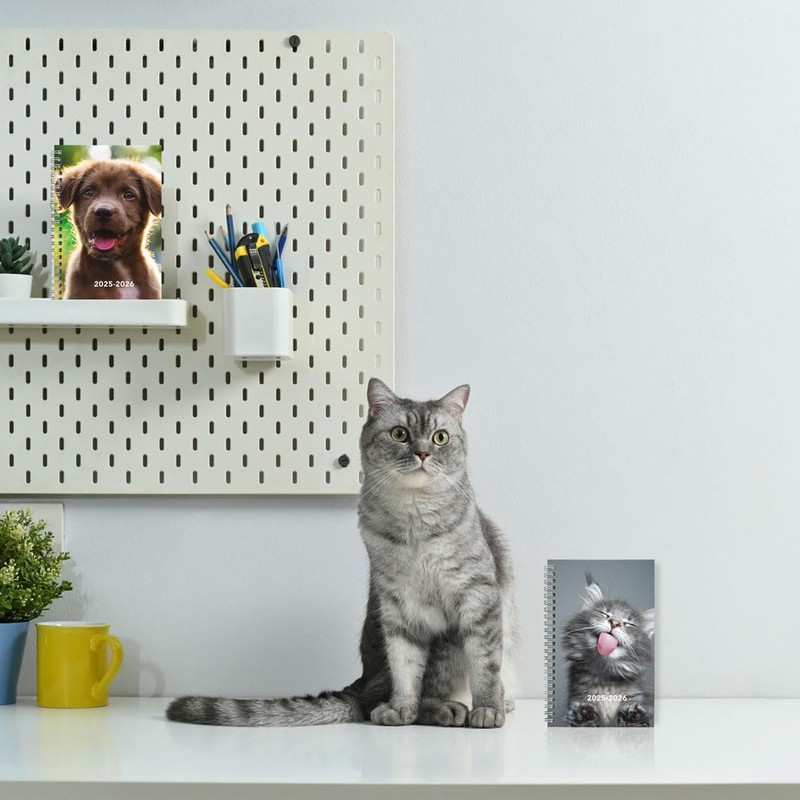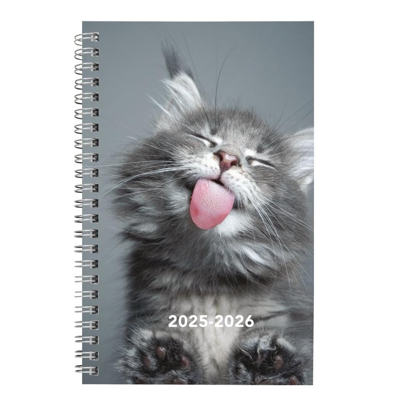 Blueline® Essential Academic Weekly/Monthly Planner, 13 Months, July 2025 to July 2026, Twin-Wire Binding, Poly Cover, 8" x 5", Animal Design, Cat (CA114PA.01-26)