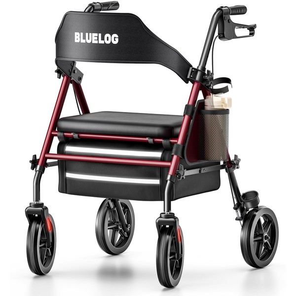 Bluelog Walkers for Seniors Rollator Walkers with Seat 350lb Capacity Foldable Design, Includes Cup Holder & Cane Holder, Burgundy