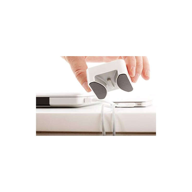 - Micrco-suction and weighty frame hold cables in place and keep connectors from falling behind desks and workspaces
