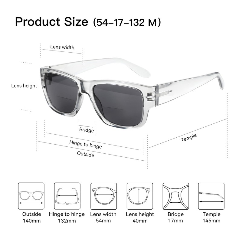 Available in diopters from +1.00 to +3.50 and two classic colors—transparent and black—BLUEMOKY’s bifocal sunglasses are your go-to choice for both practicality and timeless style.