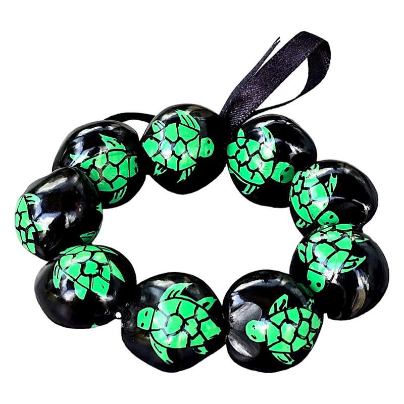BlueRica Hand Painted Kukui Stretch Bracelet (Green Turtle)