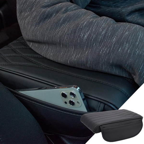 Blueshyhall Car Armrest Cover Cushion, Auto Center Console Pad, Memory Foam Hand Rest Pillow with Storage Pocket (Black)