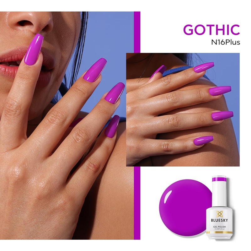BLUESKY Gel Nail Polish - Soak Off Gel Polish UV/LED Lamp Cures, Pintura de Gel para Uñas, Long Lasting, Vegan, 15ML, N16P/GOTHIC