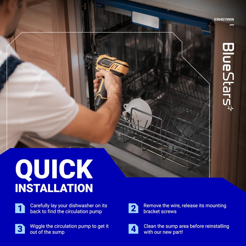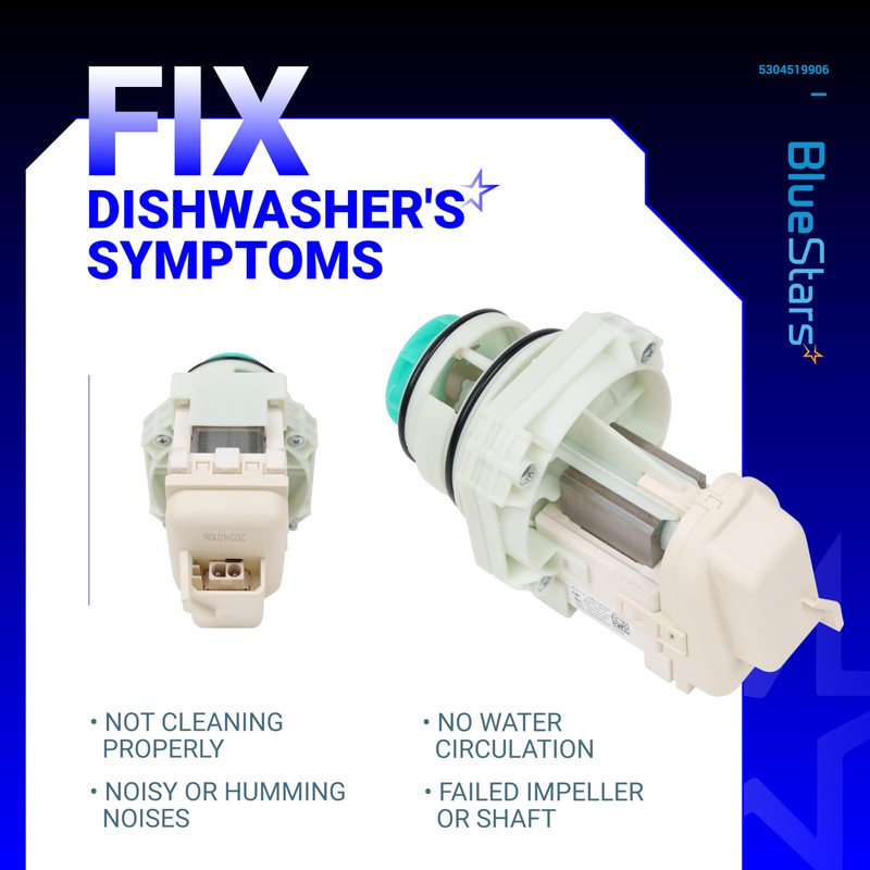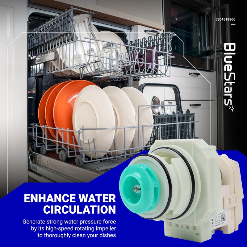 BlueStars 5304519906 Dishwasher Pump And Motor Assembly - Compatible with Frigidaire, Ikea, White-Westinghouse Dishwashers - Replaces AP6840161 PS12712308 EAP12712308 - Easy to Install & Ultra Durable