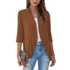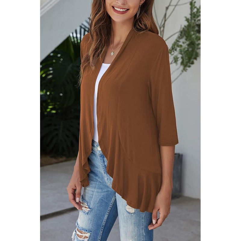 Bluetime Women Causal Blazer 3/4 Sleeve Draped Ruffles Soft Knit Sweaters Open Front Cardigan Fall (S, Brown)