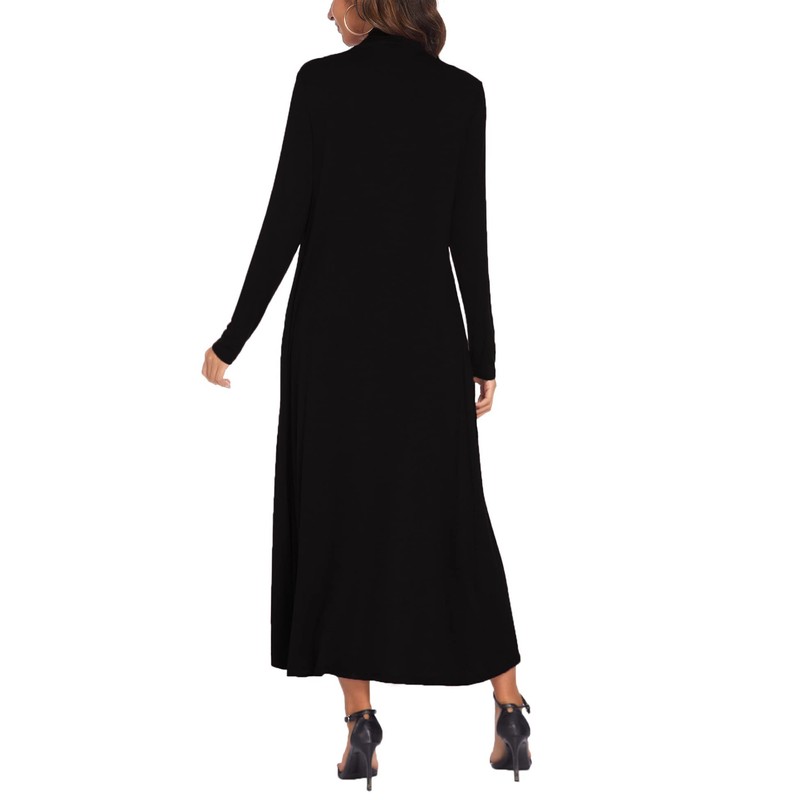 Bluetime Women Losse Open Front Drape Cardigan with Pockets Maxi Long Lightweight Duster (M, Black)