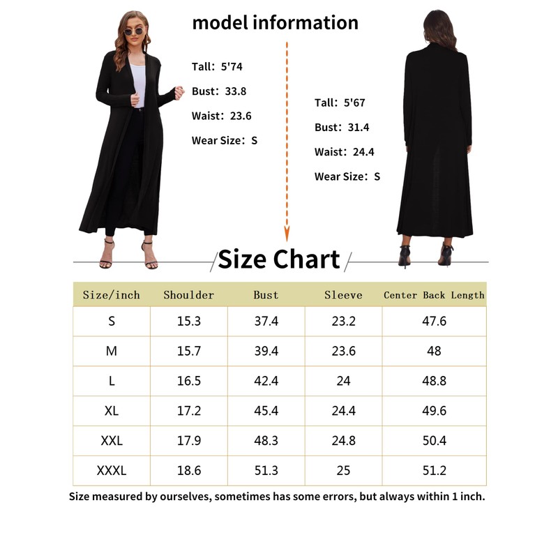 - Size and Color: Floor length cardigan duster is available in 6 sizes and is suitable for most figures. Tall women cardigan dusters have many classic colors. You can easily match it with any clothes you wear.