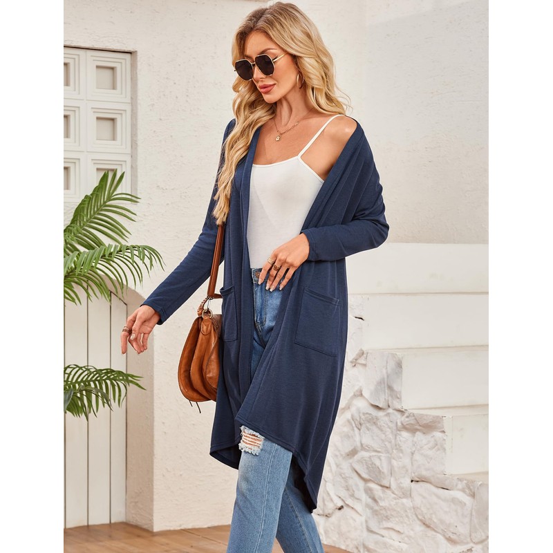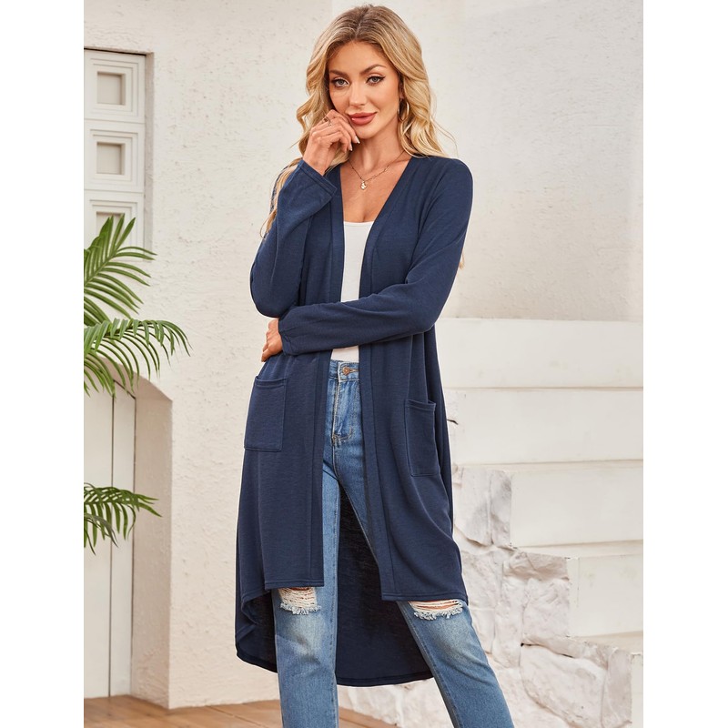 - Design Feature: Long sleeve cardigan has typical chest opening design and unique high low hem, you can easily match it with your favorite top or dress; Long cardigans are suitable for most people, especially for tall women, or you can match with high-heeled shoes; Soft duster cardigan has pockets on each side of the waist, which is large enough to hold your mobile phone;Light material and beautiful color are the perfect combination of each season