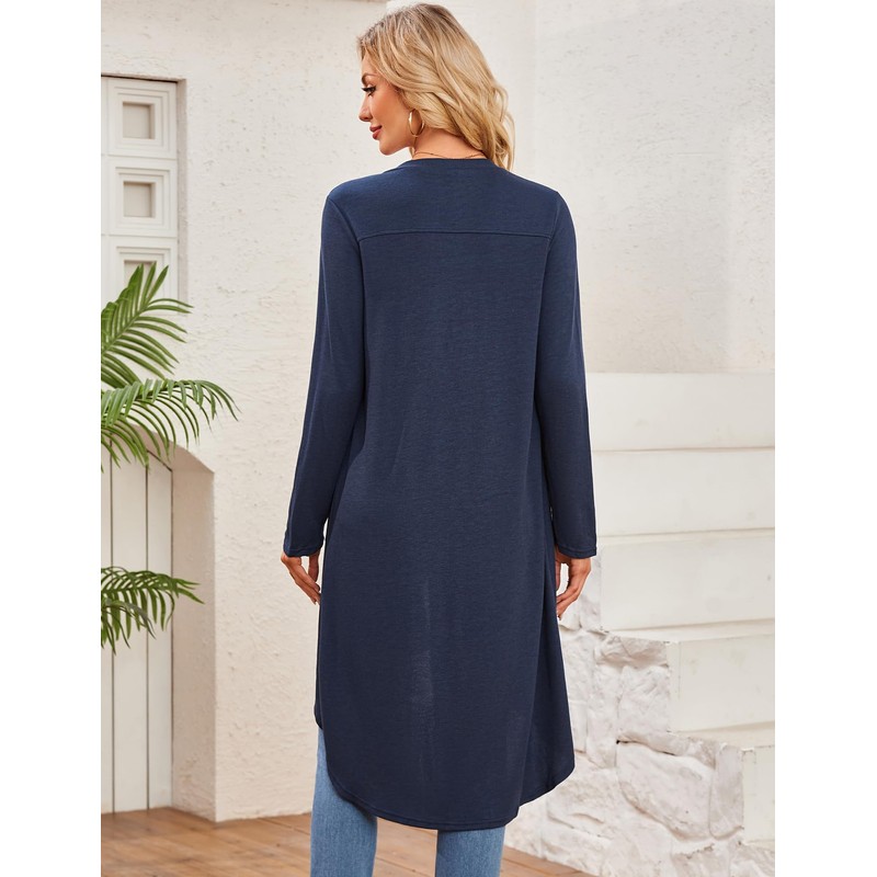 Bluetime Women Open Front Long Cardigan Lightweight Long Sleeve High Low Hem Maxi Duster with Pockets (M, Navy Blue)