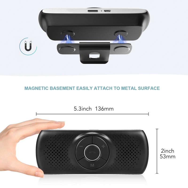 • Magnetic attraction design: the innovative magnetic field adsorption technology allows the hands-free car kit to be easily mounted on metal surfaces such as sun visors and car windows. Its strong and stable fixing effect makes it widely applicable, not only in the car, but also in the kitchen, birthday parties, travel and other everyday scenes. You can always take it with you to enjoy music and communication.