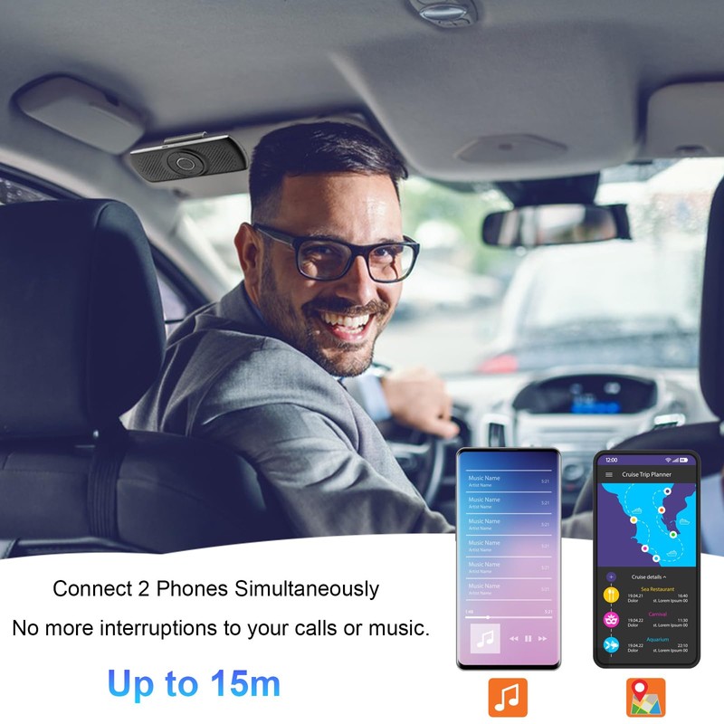 • Safe driving: With a double click on the M button on the hands-free car kit, you can easily start Siri/Google Assistant to make calls, send messages and more, without taking your hands off the steering wheel, making driving safer. In addition, this Bluetooth car hands-free device can be connected to two mobile phones at the same time, so you can easily switch between music and calls and provide an all-round comfortable service.