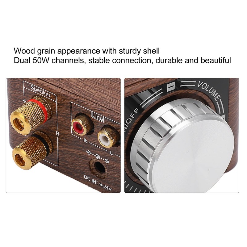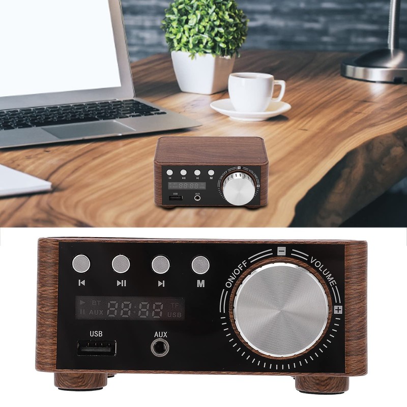 Bluetooth 5.0 Power Amplifier, 2 Channel Bluetooth Power Amplifier, DC9V-24V Wood Grain HiFi Digital Amp Universal with USB Input for Home Theater