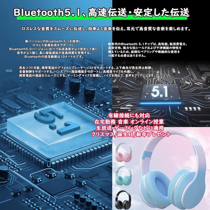 Bluetooth 5.1 Wireless Headphones, Wired, Wireless, Dual-Use, Over-Ear Headphones, Built-in Microphone, Closed, Foldable, Wireless Noise Cancelling Headphones, Low Latency,