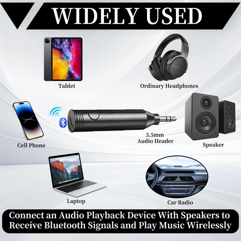 - Wide Compatibility and Easy Setup: This AUX to Bluetooth adapter works with most devices featuring a 3.5mm AUX input. It’s compatible with car stereos, home speakers, headphones, and more. Its plug-and-play design makes installation and operation hassle-free for all users