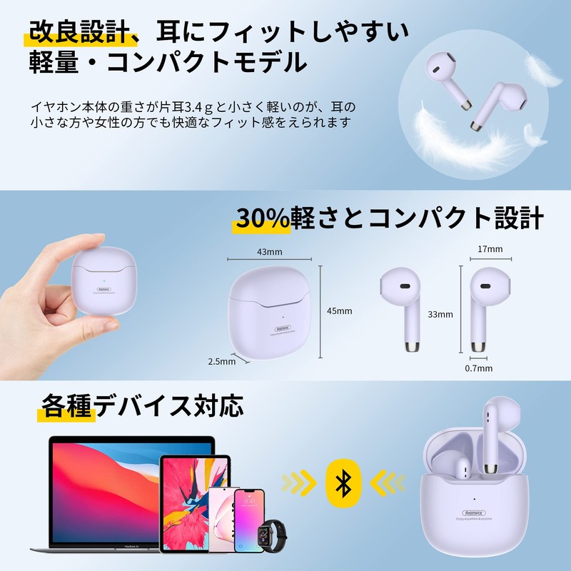 - Compact and lightweight design and waterproof for everyday use: The charging case weighs approximately 1.6 oz (44 g), making it lightweight and small enough to be carried around. Splash-proof design that is waterproof for everyday use and is resistant to sweat and splashing. Great for jogging, running, sports, gym, etc. Package Contents: Bluetooth earphones, rechargeable storage case, Type-C charging cable, Japanese instruction manual (English language not guaranteed). If you have any questions regarding the use of the product, please feel free to contact us through your order history. Contact us and we will respond quickly and carefully