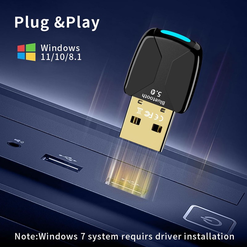 • Plug and Play für Windows: Kompatibel mit Windows 8.1, 10 und 11 (stellen Sie sicher, dass Ihr Computer mit dem Internet verbunden ist). Unterstützt Win7 (Treiber erforderlich für Win7 und kann heruntergeladen werden). Der bluetooth-adapter ist nicht kompatibel mit Apple-Mac, Linux, TV, Autoradio oder Windows 8 XP Vista 2. Dieser Bluetooth dongle darf nicht direkt verwendet werden Xbox/PS4/PS5-Konsole.