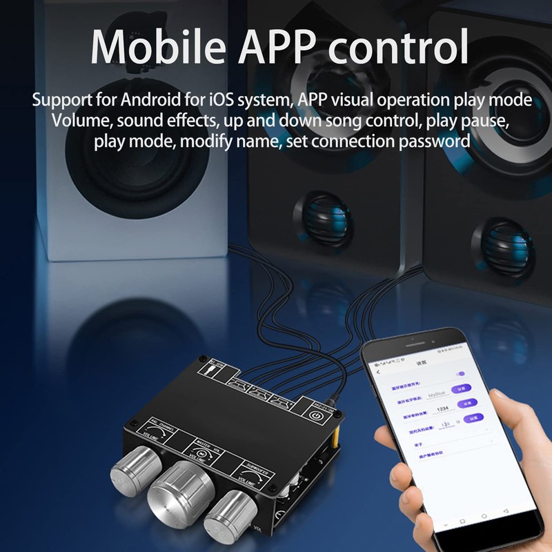 4. MOBILE APP CONTROL: Bluetooth amplifier board supports cell phone APP control, support for Android for iOS system, to meet your different needs of use.