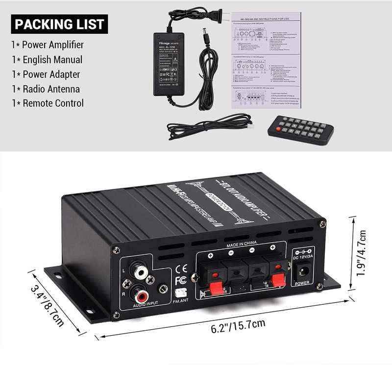 - Dual channel: Bluetooth audio amplifier dual channel, maximum output power 2 x 400 W. Rated output power 2 x 40 W, input DC 12 V, drive 4-16 Ohm speaker. With antenna, the signal is better and the anti-interference ability is strong