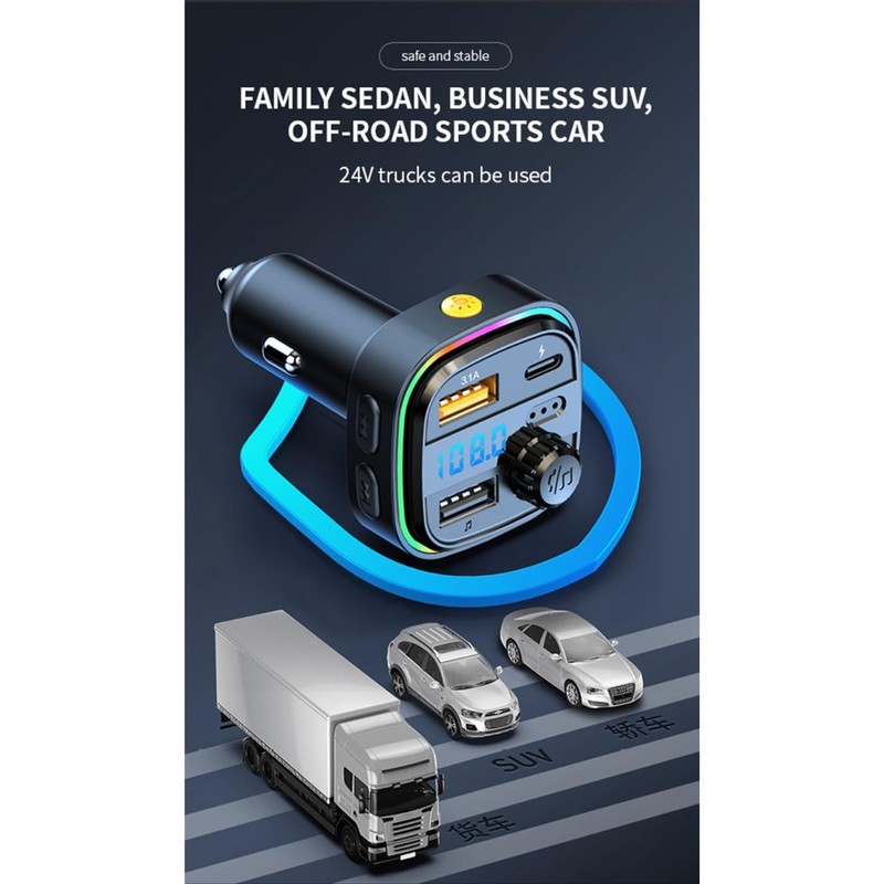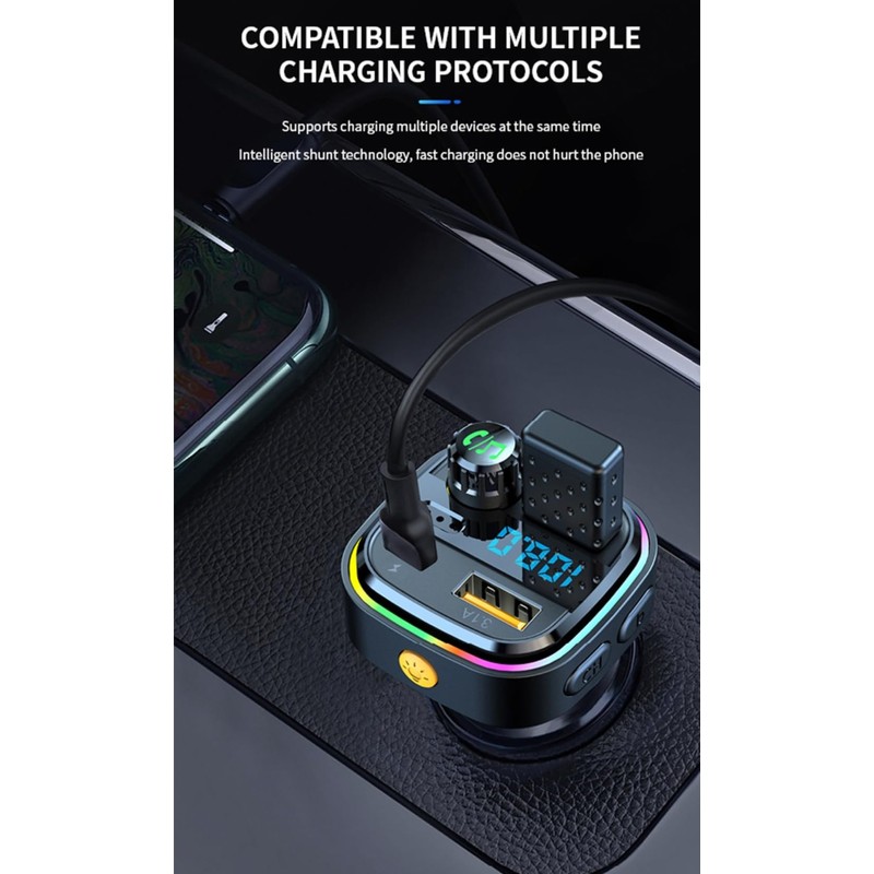 - {3 Modes 7-Color Changing Light} - The FM transmitter Bluetooth Car has 3 light modes: 7 color light, 7 color breathing light and a dark mode to meet the needs of every driver.