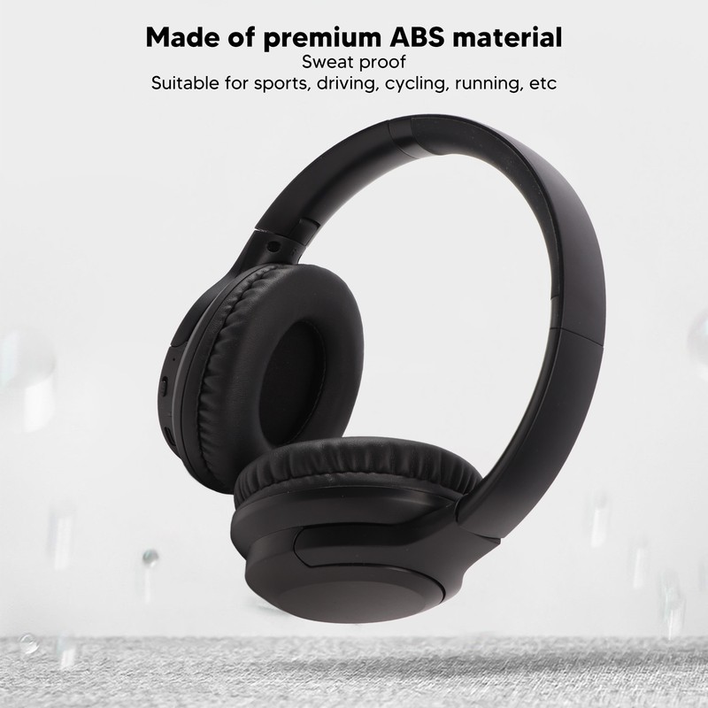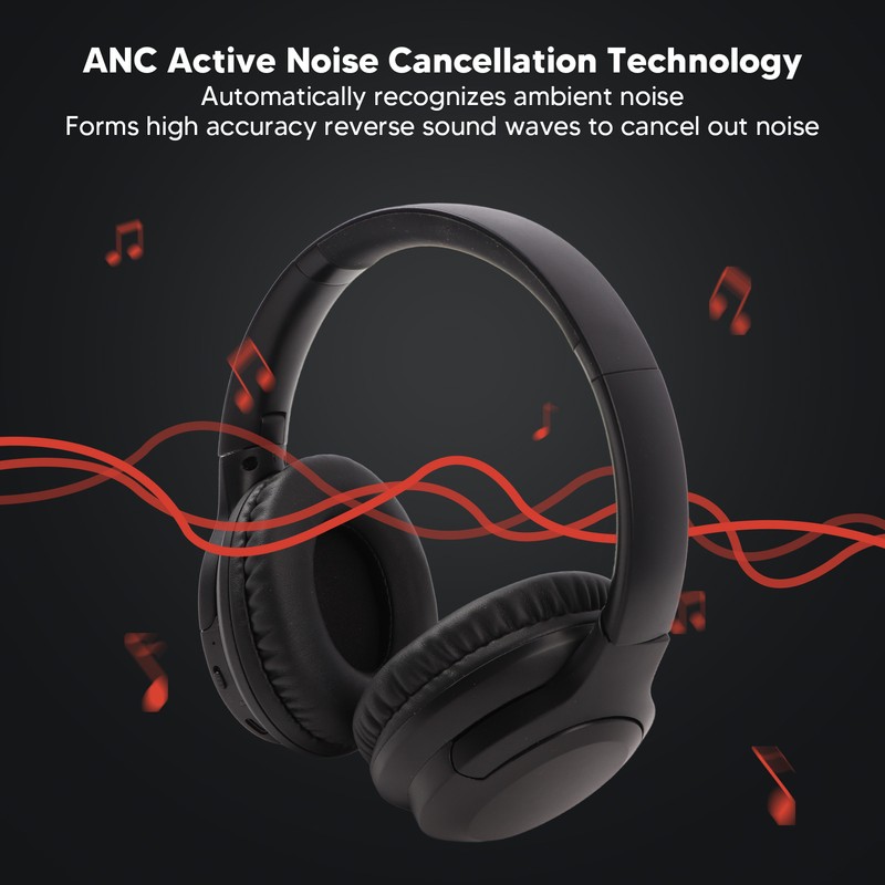 1、Noise Reduction: ANC active noise reduction technology, automatically recognizes ambient noise and forms high accuracy inverse sound waves to cancel out the noise. 2、Sweatproof: Bluetooth headset is made of premium ABS material, sweat proof, won't affect your sports, suitable for driving, cycling, running, etc. 3、Lossless Stereo Sound: This bluetooth headphone adopts professional decoding technology to provide premium stereo sound quality and transmit lossless music. 4、Foldable: The ear cups of the over ear headphone can be rotated and folded, convenient to store in the headphone case or backpack, lightweight and easy to carry. 5、Long Battery Life: Wireless headset has built in 400mAh battery with USB charging for long battery life and uninterrupted music enjoyment.