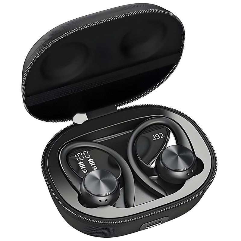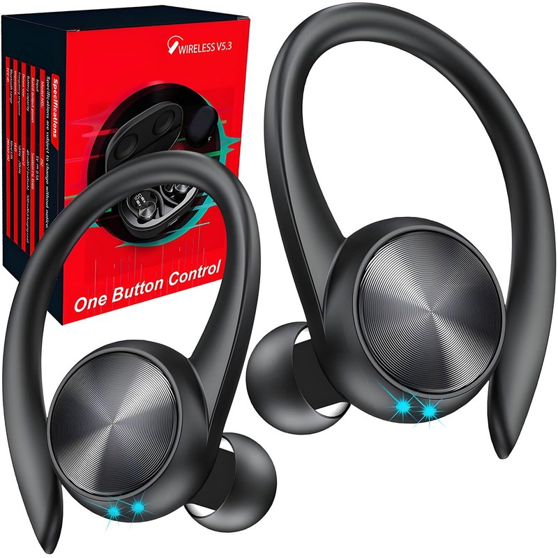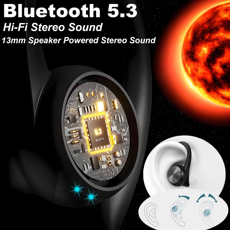 Bluetooth Headphones, 60h Playtime LED Display In-Ear Headphones Wireless Bluetooth 5.3 with 4 ENC Noise Cancelling Mic, Wireless Headphones, Wireless Earphones with Ear Hooks for Sports/Gym/TV