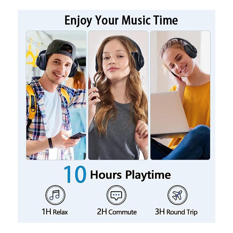 - 【Long Playing Time】: 400mAh battery capacity, 7 hours of talk time, easy to operate, whether you are talking or listening to songs, you can operate without your phone, enjoy the convenience and comfortable button feel, giving you a comfortable experience,The over-ear Bluetooth headphones are rechargeable, so if you're travelling you can fully charge the headphones in advance so you can enjoy the company of your music while you're away.