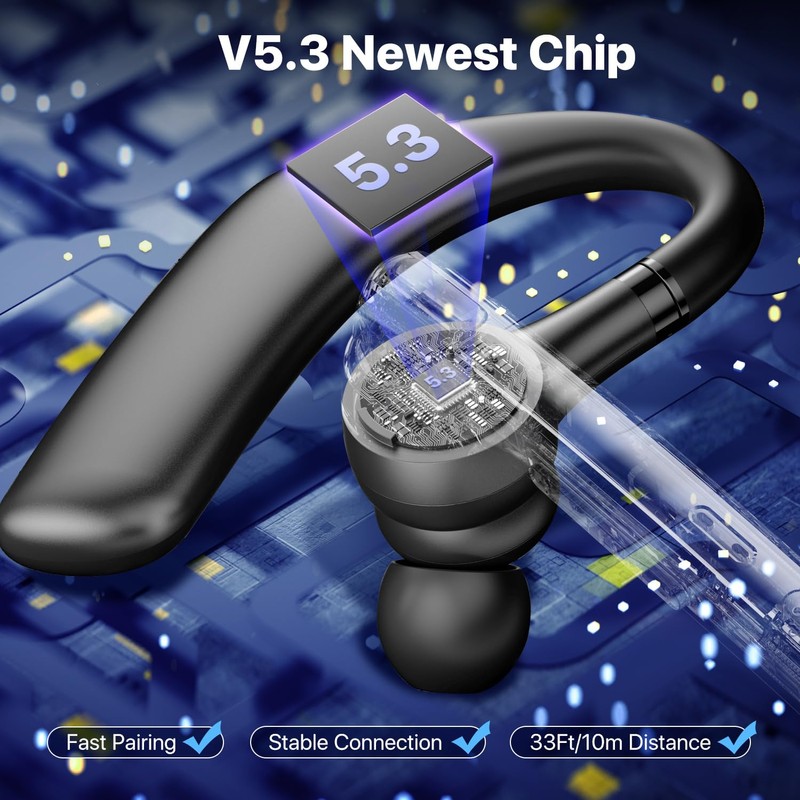 Bluetooth Headset 42Hrs Playtime Built-in Dual Noise Canceling Mic V5.3 Wireless Headset with Microphones with 500mAh LED Charging Case for Working