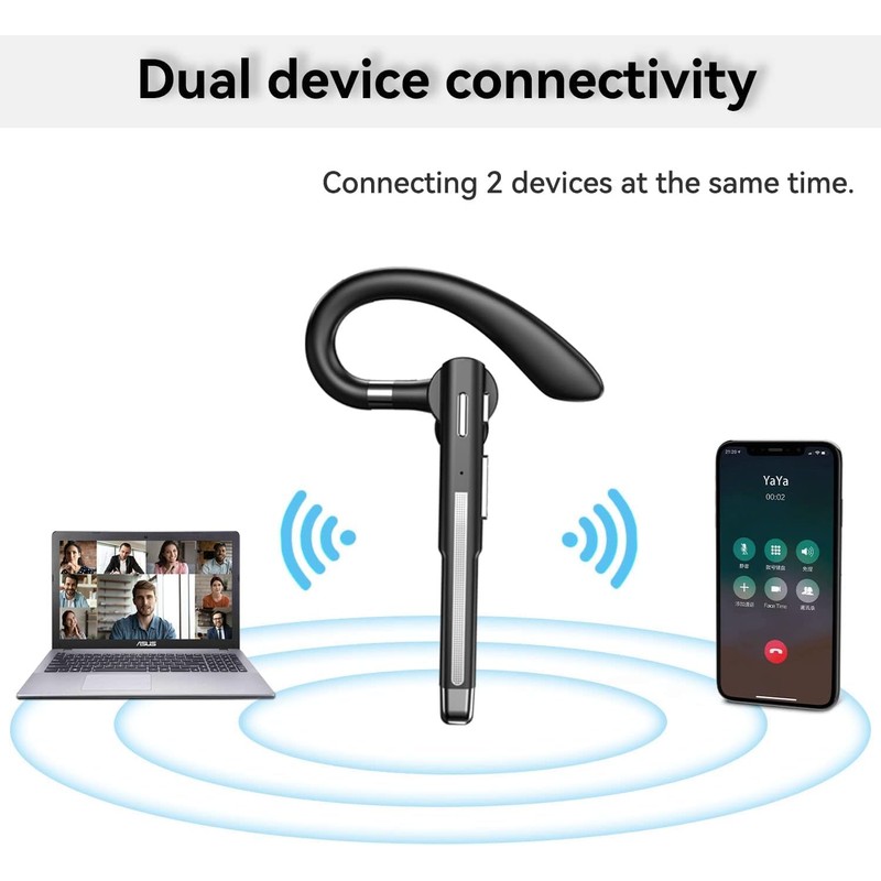 - 【Comfortable Ergonomic Design】: This wireless single ear business headset features an ergonomic design, crafted with user comfort in mind. The headset fits snugly and securely in your ear, providing a comfortable and stable wearing experience. The ergonomic design not only enhances comfort during prolonged use but also contributes to the overall durability of the headset.