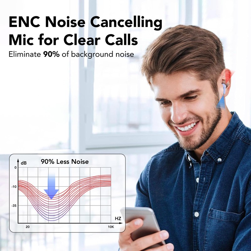 - ENC Gesprächsgeräuschunterdrückung, Bassverstärkung 85%: Verwenden Sie einen 14,2 mm dynamischen Graphentreiber, ausgestattet mit einer Hochleistungs-Verbundmembran, einem integrierten hochauflösenden Decoder und der intelligenten ENC und CVC-Geräuschunterdrückungs-Kodierungstechnologie. Die vier integrierten Mikrofone haben eine Bassverstärkung von 90 % und reduzieren effektiv 45 dB Außengeräusche für klarere Gespräche.