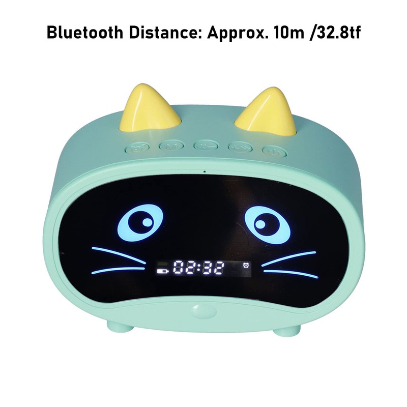Bluetooth Speaker,Small Alarm Clock Radio for Bedrooms,Dual Alarm, LED Display,Cute Cat Ear Design Supports Memory and USB Sound Cards,FM Radio,Built in1000mHA Battery for Bedroom Office(Green)