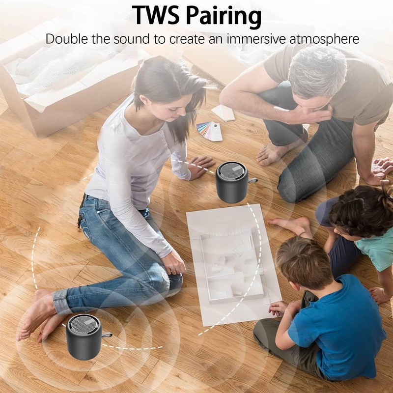 - 【Long Battery Life+Portable bluetooth speaker wireless】-Mini bluetooth speaker built-in 1200mah lithium battery,the portable speaker Playing at 50% volume when fully charged can bring you a 24-hour uninterrupted music journey.Small size (79*79*81mm) and light weight (220g). Portable speaker is perfect for outdoor, hiking, camping, picnic, pool or beach, bathroom, etc. At same time,wireless speaker is a great gift for women men!