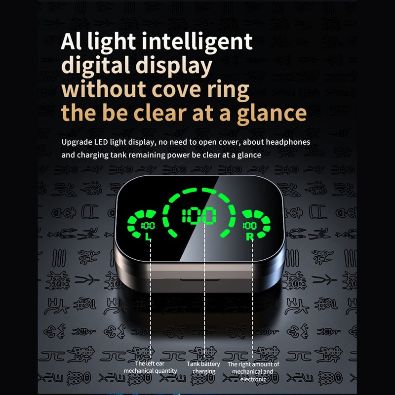 - LED LIGHT DISPLAY: Wireless earbuds feature an upgraded LED light display that allows you to see at a glance the remaining power in the headphones and charging compartment without opening the cover.